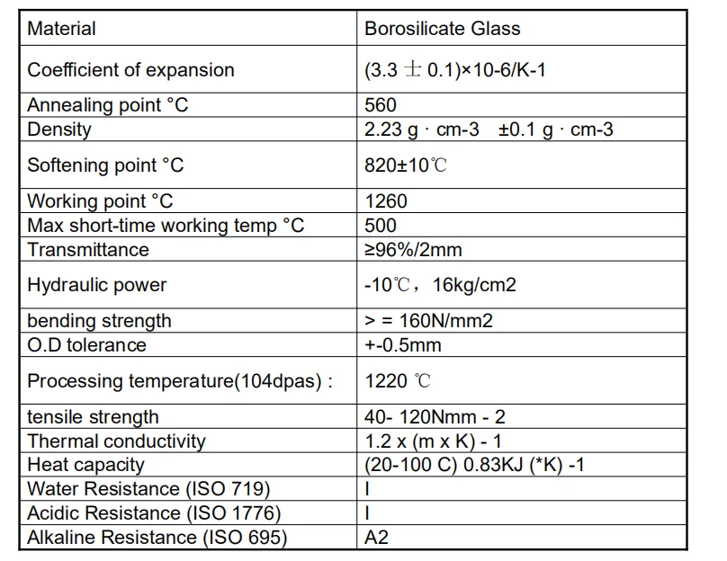 The borosilicate round glass is produced according to the international standard DIN7080.