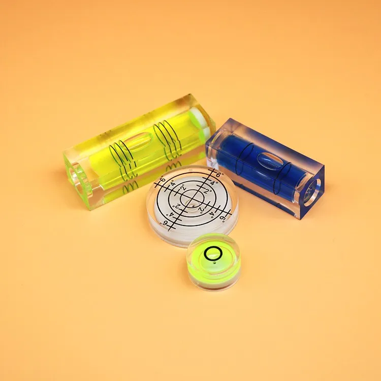We can offer these plastic level vials with different liquid colors other than the standard yellow/green shown.